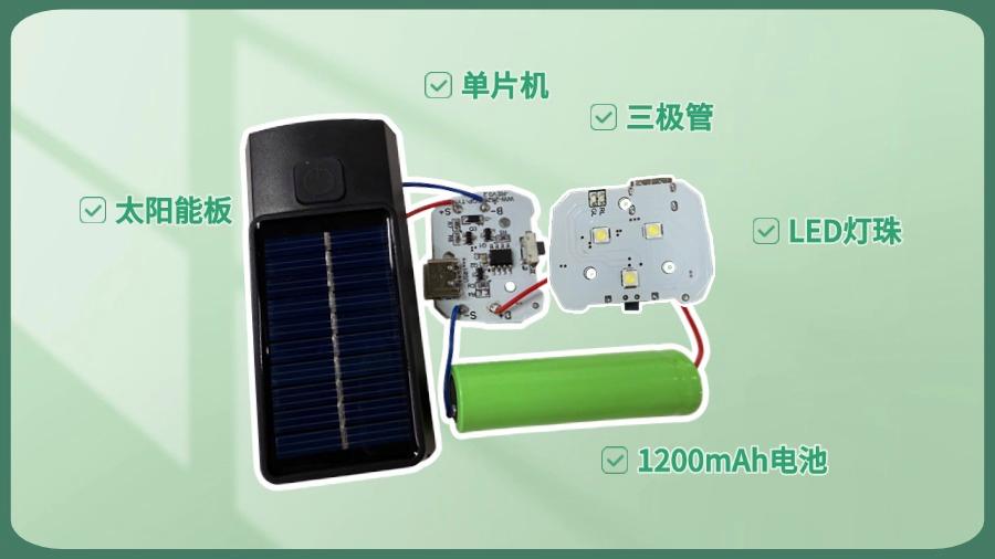 ① 电源模块:太阳能充电+Type-C应急补电,带过充/过放保护