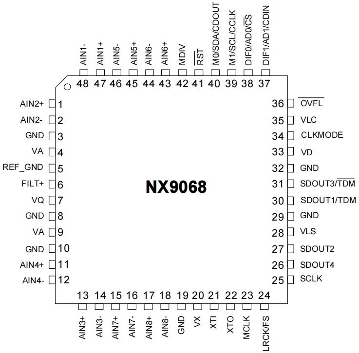 在性能上,NX9068可PIN TO PIN CS5368,功能覆盖AKM5888、PCM1861 。